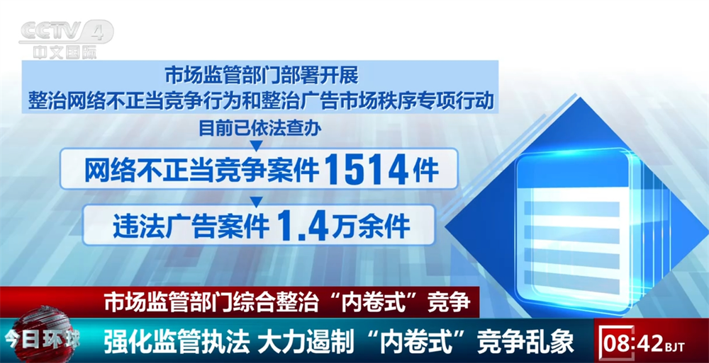 记者了解到,市场监管部门部署开展整治网络不正当竞争行为和整治广告市场秩序专项行动,目前已依法查办网络不正当竞争案件1514件、违法广告案件1.4万余件;集中曝光8起侵犯商业秘密典型案例、5起网络不正当竞争案例。市场监管总局完善相关监管措施和法律规则,推动修订价格法、反不正当竞争法、电子商务法,制定网络交易平台规则监督管理办法、直播电商监督管理办法。其中,《反不正当竞争法》已经全国人大常委会审议通过,将于今年10月15日起施行。