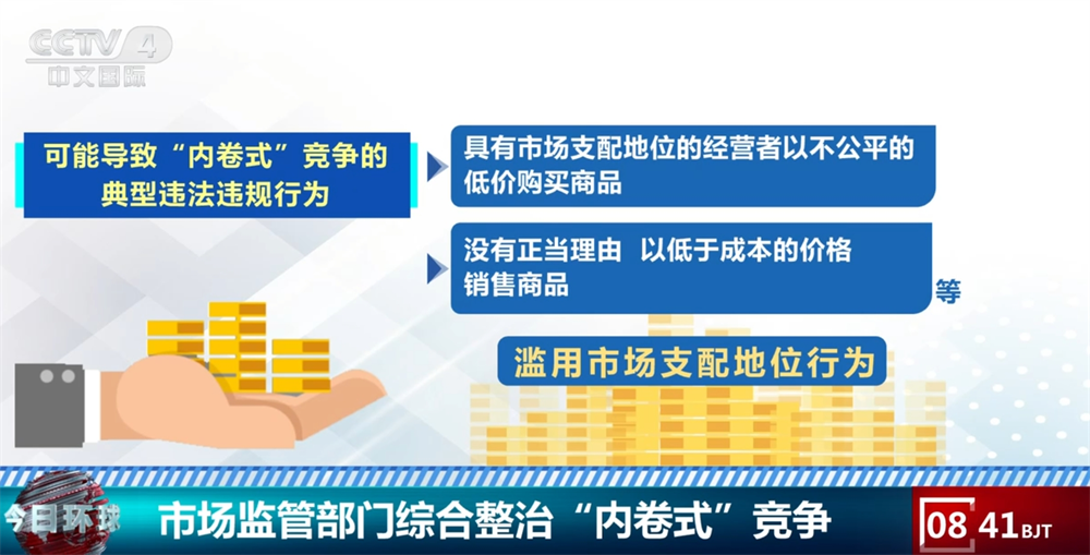 此外,市场监管总局明确,伪造或者冒用认证标志等质量标志;伪造产品产地,伪造或者冒用他人的厂名、厂址等质量不合格行为;为了排挤竞争对手或者独占市场,以低于成本的价格倾销,扰乱正常的生产经营秩序等不当价格行为;具有市场支配地位的经营者以不公平的低价购买商品,或者没有正当理由、以低于成本的价格销售商品等滥用市场支配地位行为,均属于可能导致“内卷式”竞争的典型违法违规行为。