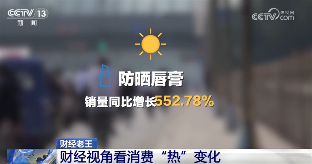 放眼全国,毒辣的太阳让大家把防晒品“武装”到了牙齿。光有遮阳帽、防晒面罩还不够,网购平台上防晒唇膏的销量同比增长552.78%。