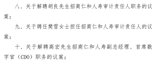 近日,招商仁和人寿高级管理层迎来重大调整,解聘副总经理、首席数字官(CDO)高宏,以及审计责任人胡良二人的职务,同时聘任副总经理、董事会秘书樊雪担任该司审计负责人。从三人履历来看,他们均在招商体系内工作多年。
