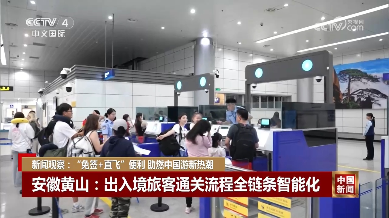 黄山海关旅检科 科长 曹云峰:“免签+直航”进一步拉近了黄山与世界的距离,黄山海关着力构建三级联动保障体系,持续优化监管服务措施,扎实推进“智慧口岸”建设。