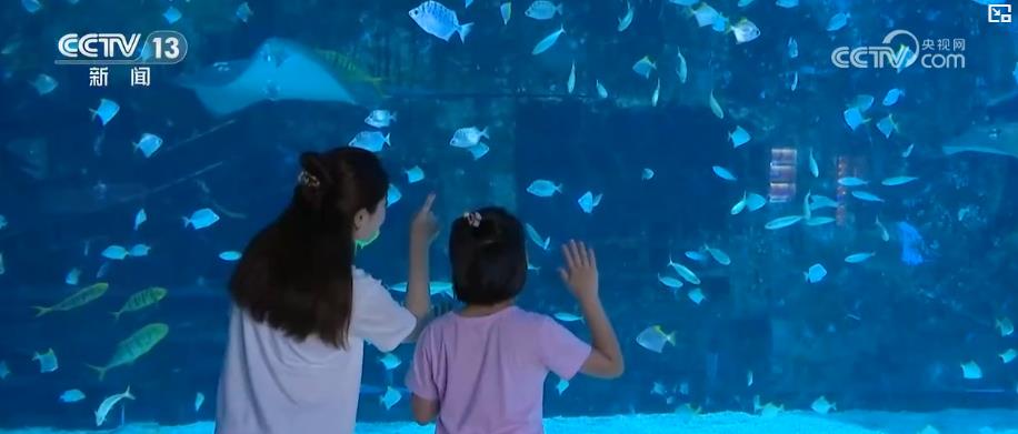 除了延长开放时间,各馆还针对“夜游”进行了精心布置,在占地4.2万平方米的北京海洋馆,生活着上千种水生生物,走进雨林奇观展区,灯光、雾森设备、特效投影等将丛林原有的静态变为动态化,结合雨林的各种声音提升氛围,带领游客走进雨林秘境之旅。“赛博海洋”多视听营造晚间神秘又充满科技感的晚间海底世界,由数控阵列球构成的水母,利用高低错落排列上下波动,打造出栩栩如生的海洋生物形象,让游客近距离感受光影的魅力。