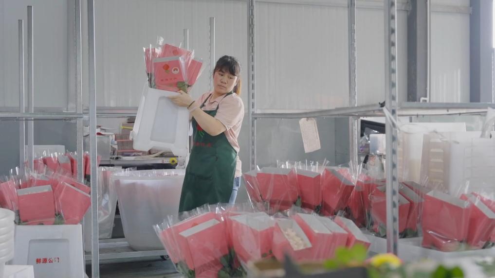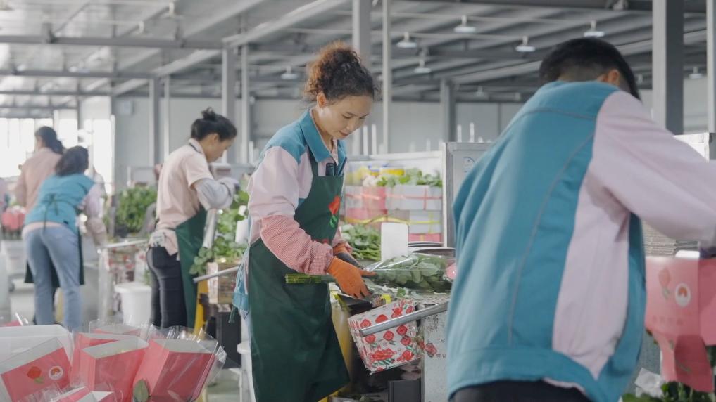 在晋宁昆阳张良花卉专业合作社的包装车间内,工人们忙着分拣、包装和打包,现场一派繁忙。云南晋宁昆阳张良花卉专业合作社负责人张良表示,最近白色、红色和粉色的玫瑰鲜切花特别受欢迎,每天出货量20多万枝。“我们的花主要发往上海、重庆、广州等城市。目前整个销售量情况比较良好,订单还在持续增长。”
