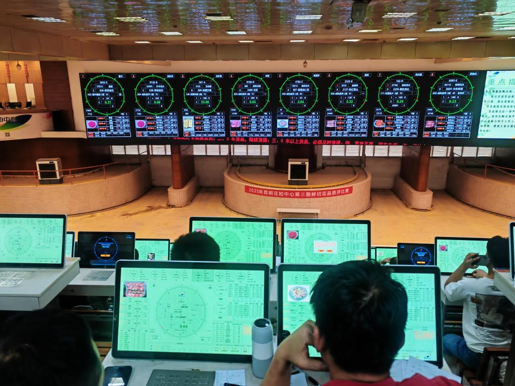 线下市场热闹非凡,线上拍卖平台高效运行,数字化手段正在为花卉流通提供有力支撑。云南爱必达园艺科技有限公司副总经理徐馨介绍,中心线上的日均交易量大约每天在40万枝鲜切花,参与交易的供货商每天大约200户,线上拍卖的购买商大约180户。“为保障交易效率和鲜花品质,我们在拍卖前做好物流接收、质检、定级、数据录入等各项准备,拍卖结束后,及时完成配货、打包和发货,确保每一枝鲜切花以良好的状态送达客户手中。”