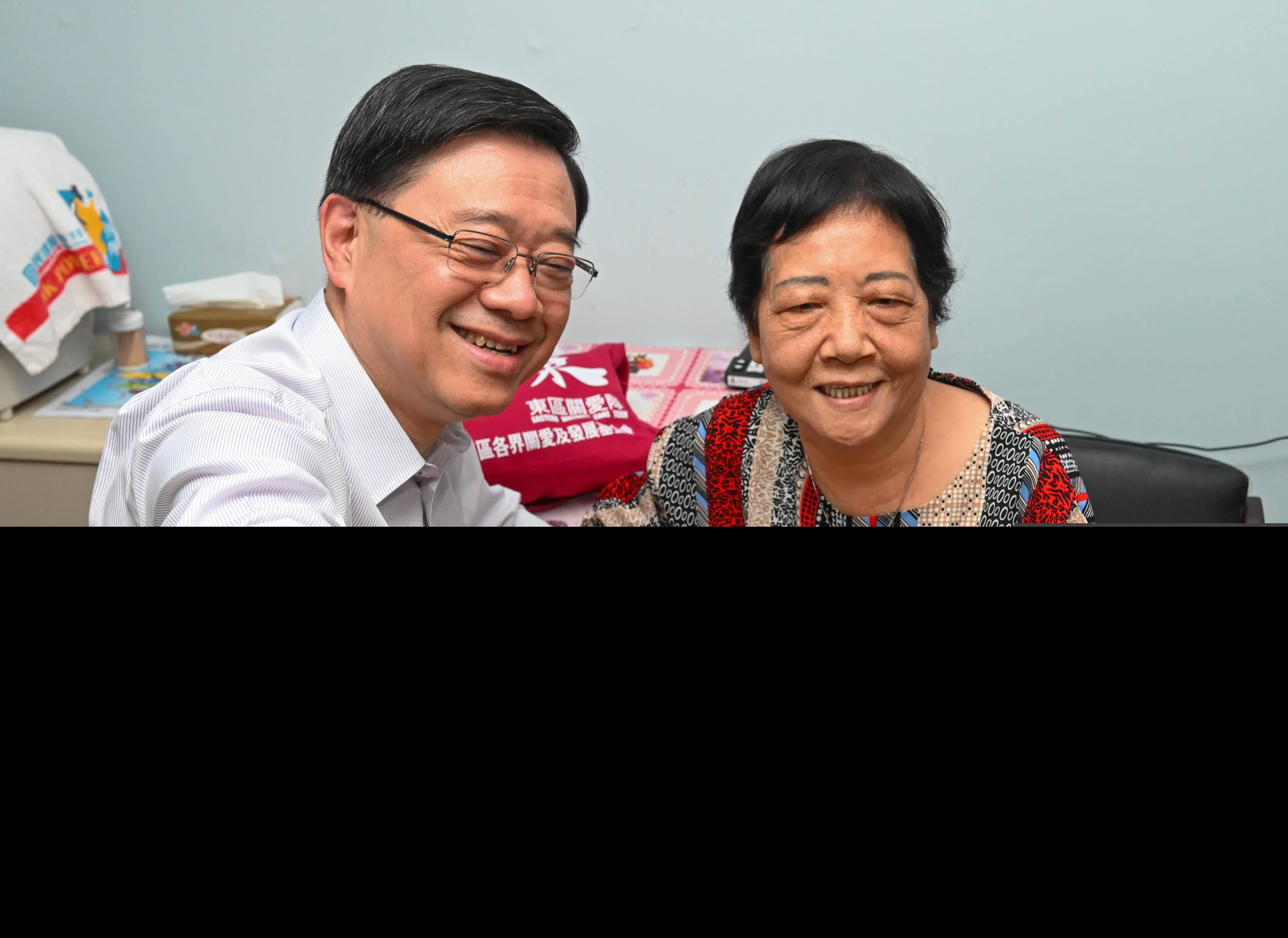 李家超(左)探訪一名居住在愛東邨的獨居長者。