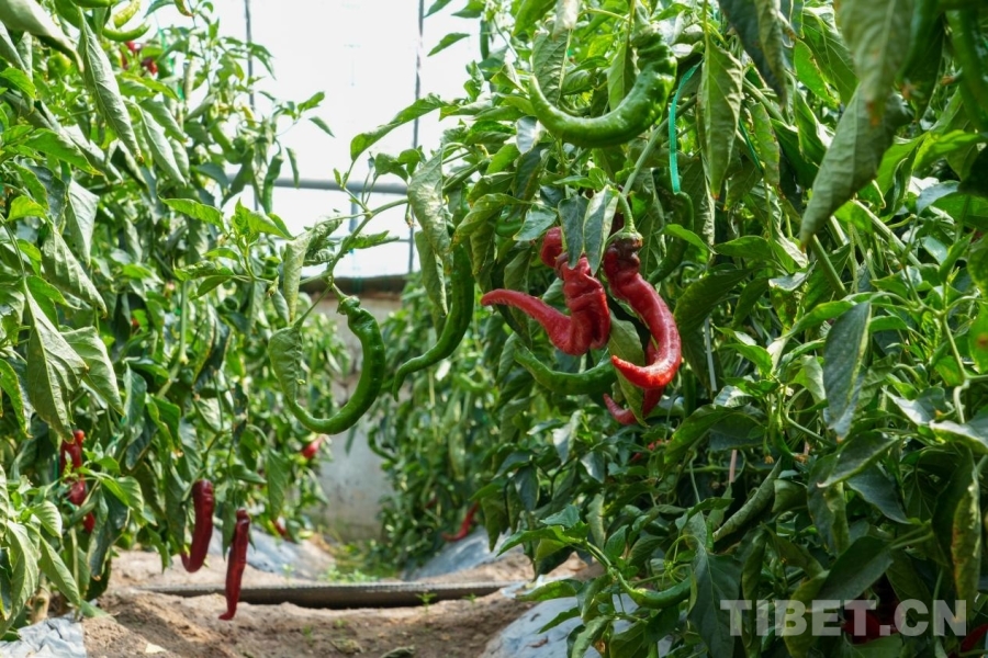 中国西藏网讯 青翠欲滴的生菜、垂落枝头的龙椒、肥硕饱满的茄子、品种多样的西红柿……在西藏阿里,这些新鲜果蔬不再奢侈难得,噶尔县生态农业产业园区内的一座座大棚,把“果园子”和“菜篮子”搬上了海拔4500米的高原,让百姓们能以接近内地的价格吃上可口的蔬果。