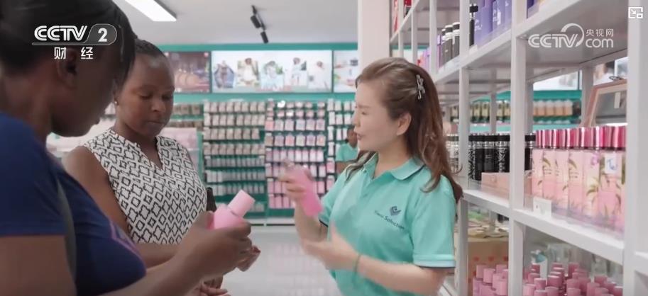 楼利进的化妆品入选了首批义乌品牌集合店,站在自己产品的货架前,她当起了临时“销售”,这也是她第一次踏上非洲大陆。