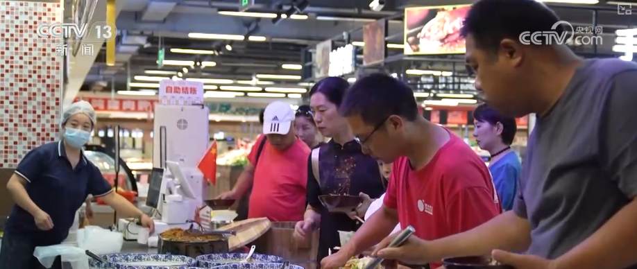 临近中午,科技馆楼下的“一刻钟便民生活圈邻里幸福食堂”已经有不少人开始用餐。18种菜品供居民自助选择,60岁以上老年人就餐不超10元。这个依托辖区内连锁超市新建的食堂深受居民欢迎。