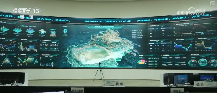 国网新疆电力公司电力调度控制中心调度控制处处长朱清介绍,这里是电力调度控制中心,是全疆电力数据的汇集点,可以看到全疆电力系统的负荷以及新能源发电情况和各地区的用电需求情况,通过自动发电控制系统实现全疆电力的调配。目前,将南疆的电力送至北疆以及疆电外送。