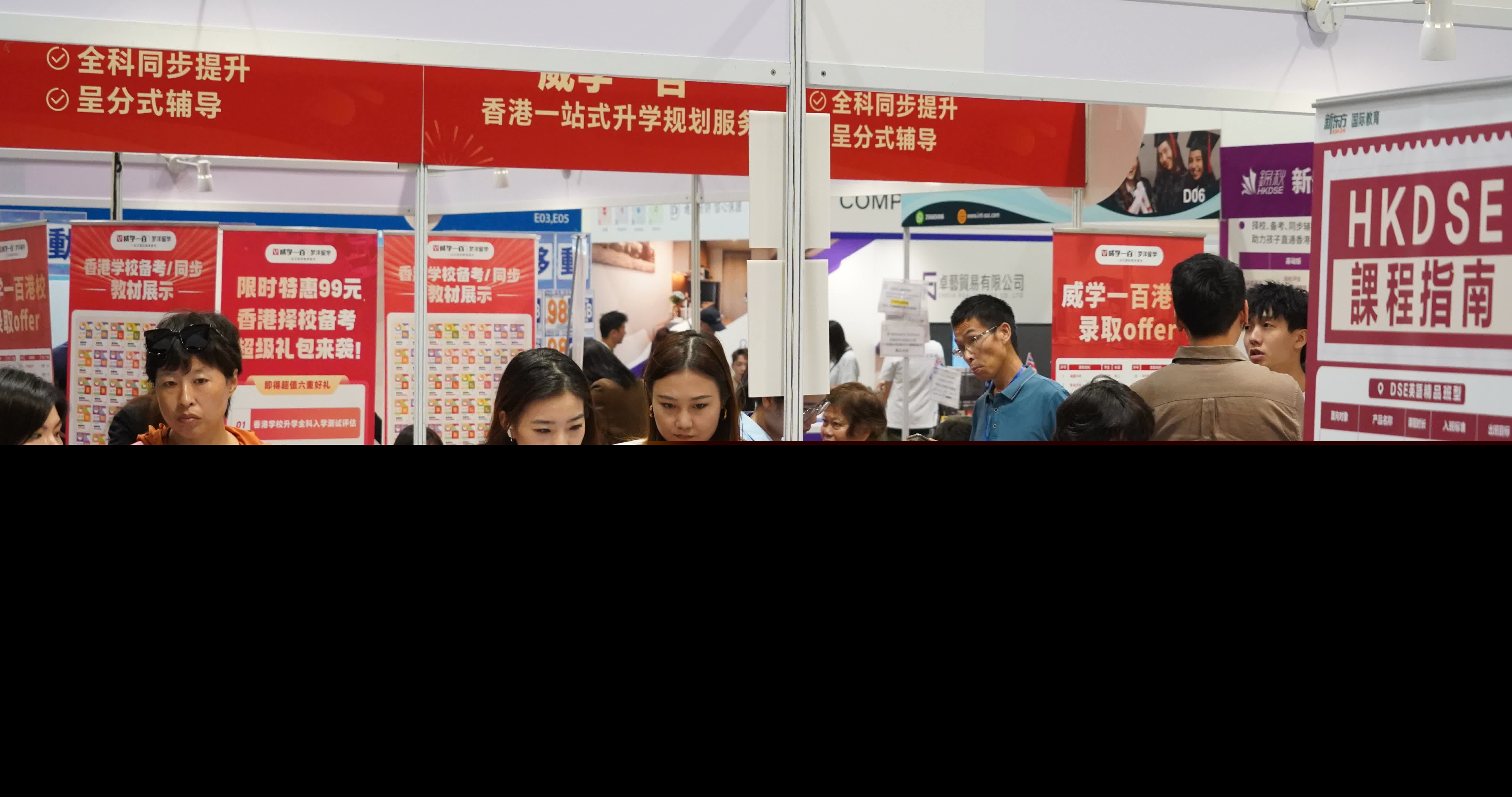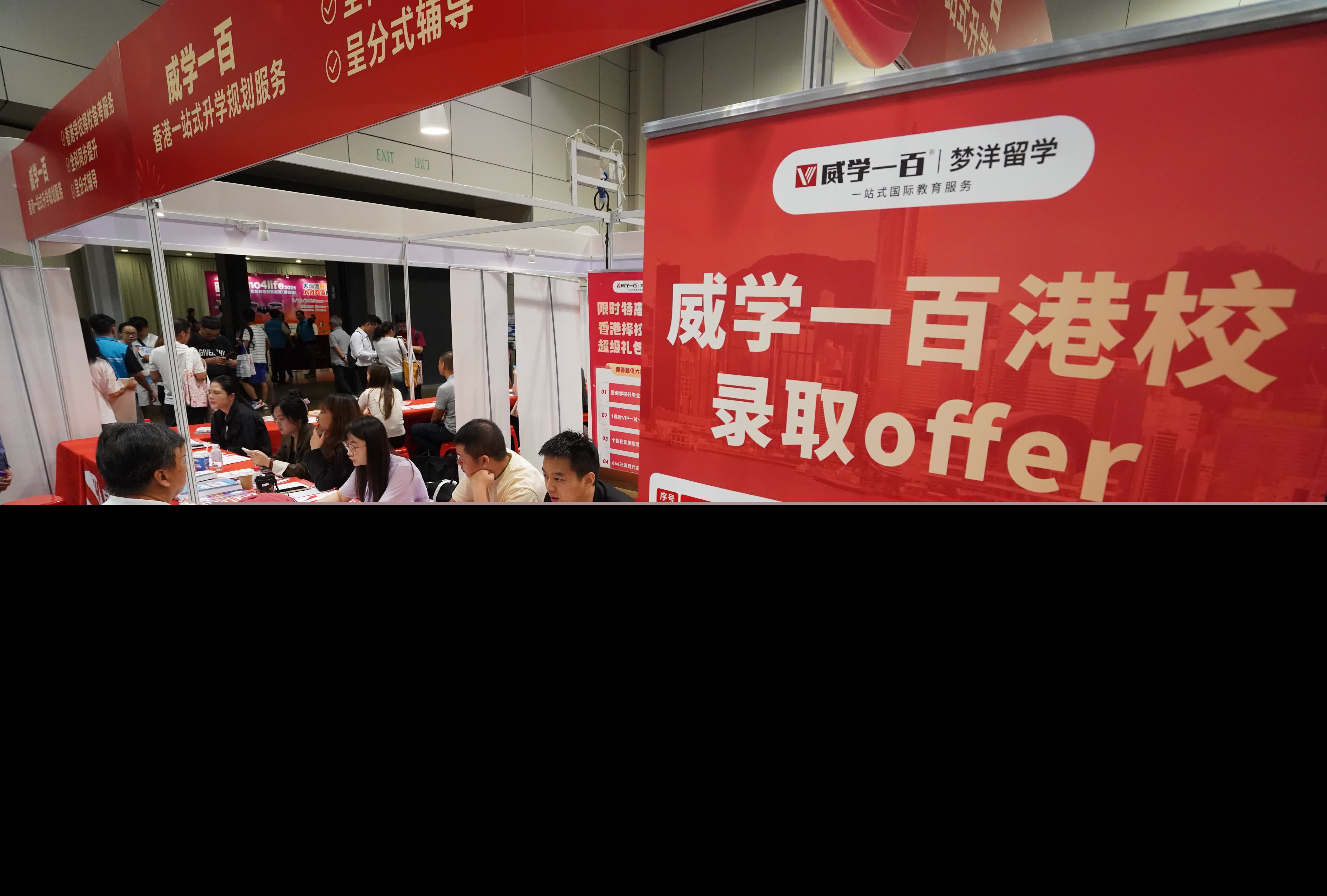 「inno4life創意文化及科技創新展覽2025」及「大灣區升學教育及人才交流博覽會2025」今日在香港灣仔會議展覽中心開幕。(香港文匯報記者 曾興偉 攝) 香港文匯報訊 (記者 唐文) 一連三天的「inno4life創意文化及科技創新展覽2025」及「大灣區升學教育及人才交流博覽會2025」今日(3日)在香港灣仔會議展覽中心開幕,有不少內地家長專程趕來,了解子女的多元升學出路,包括來港就讀中學、大學及留學海外。