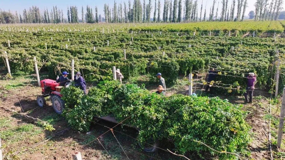 142团种植的6000亩啤酒花喜获丰收 (陆永红 摄)