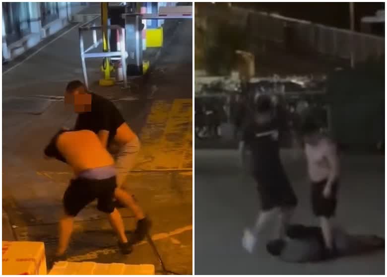 香港文匯報訊(記者 蕭景源)今早(11日)網上瘋傳一段僅23秒的打鬥影片,地點為大埔廣福邨廣惠樓對開停車場外。片中顯示一中年男子與一年輕男子在車場閘口埋身肉搏,雙方拳來拳往毫不惜力,期間中年漢一度佔據上風,揮拳之餘更扯下對方上衣,並爆粗稱:「係咪打呀!X你老X」。年輕男雖明顯不敵,但仍叫嚷:「停手呀,X你老X!」