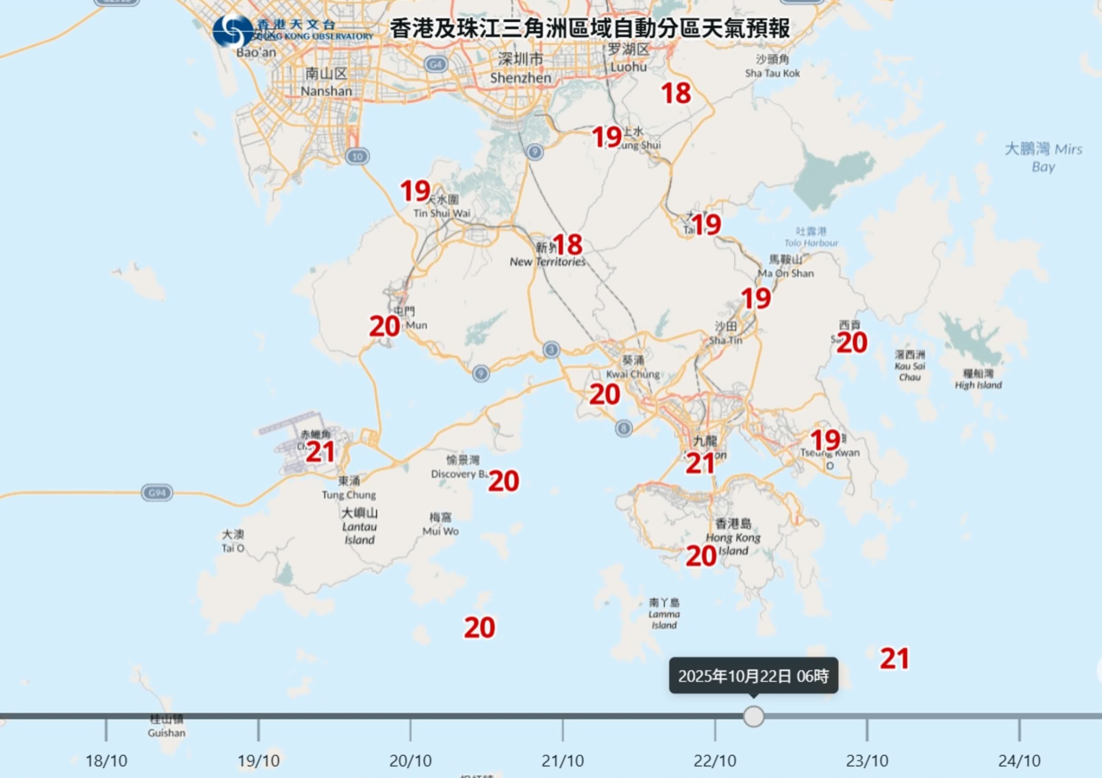 香港文匯報訊(記者 蕭景源)下周四(23日)是廿四節氣中的「霜降」,即是秋天最後一個節氣,指天氣漸冷,大地開始產生霜了。天文台預料下周日(19日)本港氣溫開始下降,介乎27至33度;下周一(20日)氣溫跌穿30度,降至24至29度;至下周二(21日)氣溫進一步降至22至26度;料「霜降」前的周三(22日)及「霜降」當日,市區氣溫會降至最低21度。自動分區天氣預報顯示,下周三清晨新界多區跌穿20度,流浮山、上水、大埔、沙田及將軍澳只有19度,石崗及打鼓嶺更低見18度。
