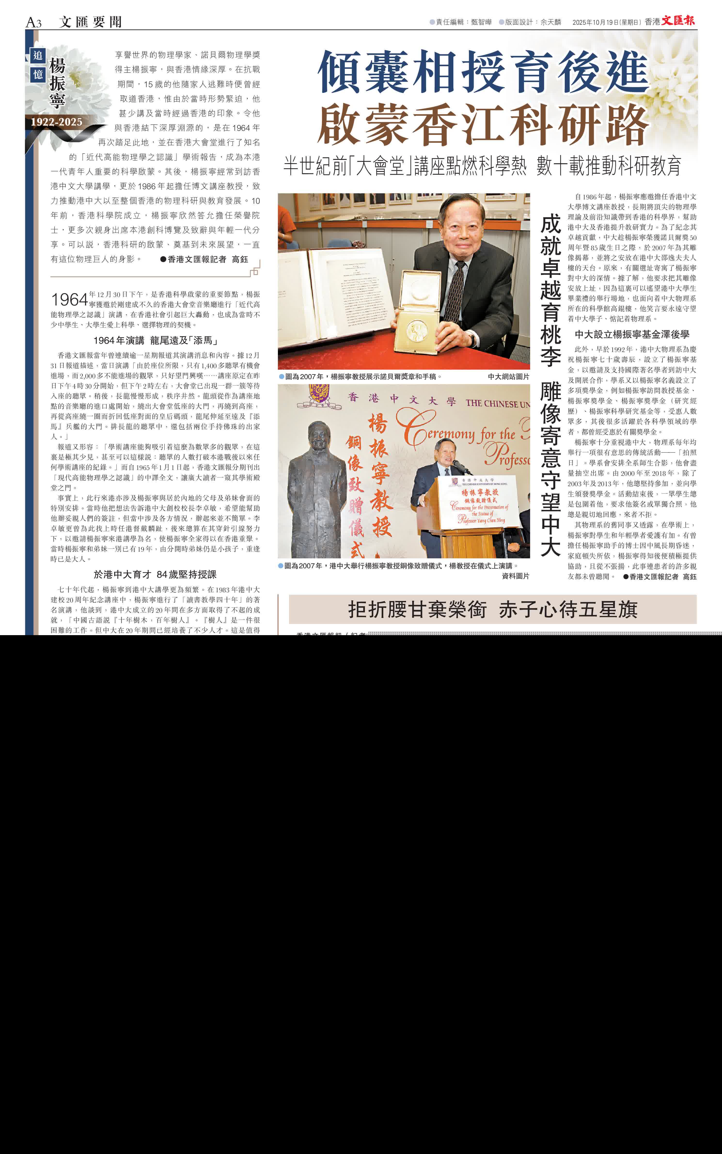 不朽貢獻留典範 港科教界永懷念