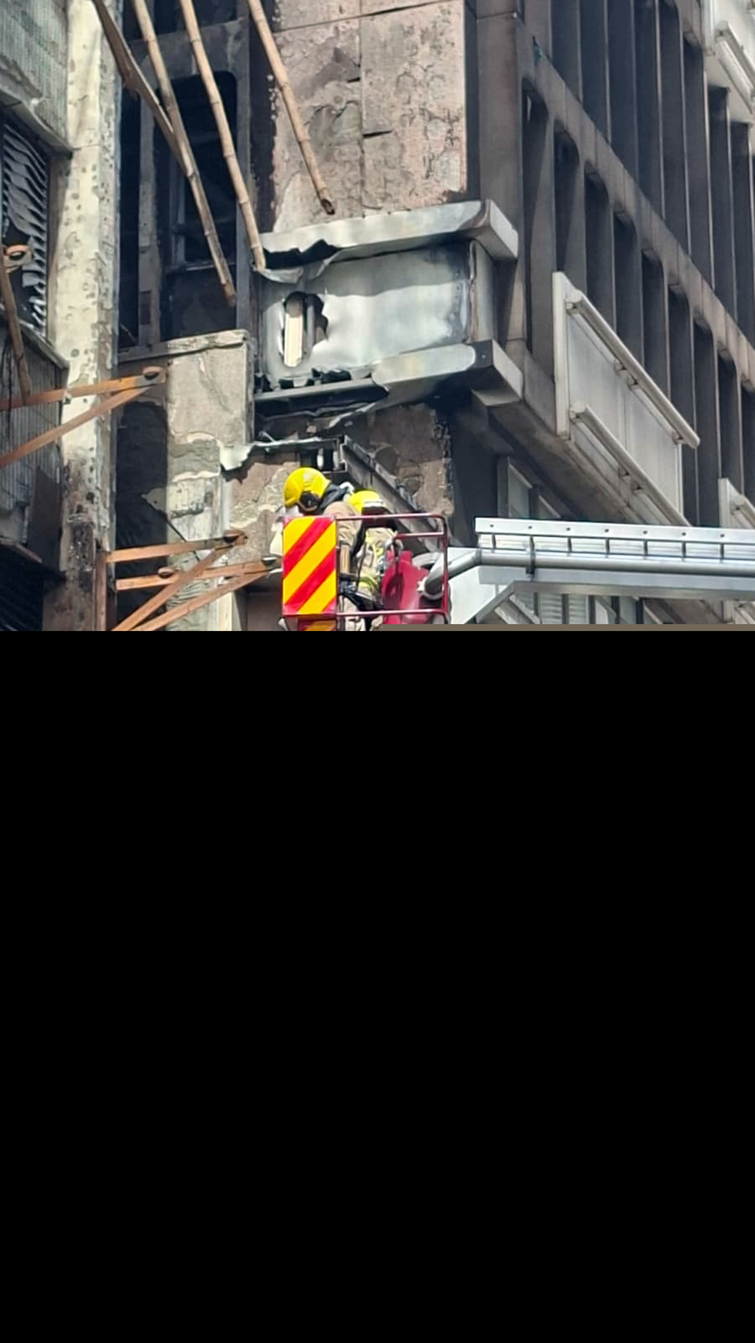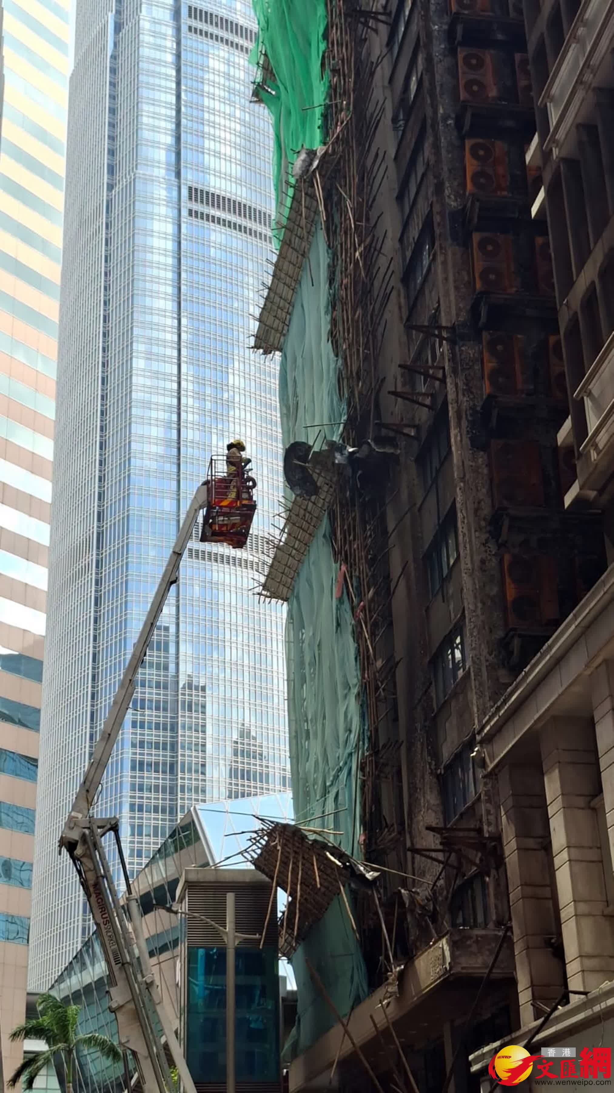 屋宇署指,昨日下午火警發生後,已即時聯絡大廈業主、工程項目的註冊建築專業人士及註冊承建商,並在火勢撲滅及取得消防處同意後,派員於當夜和今日早上聯同工程項目人員視察了大廈外內情況。初步認為大廈整體樓宇結構沒有明顯危險,但發現大廈外牆有一些鬆脫物需即時移除,包括已損毀的棚架、破損的外牆玻璃,以及鬆脫的外牆批盪等。