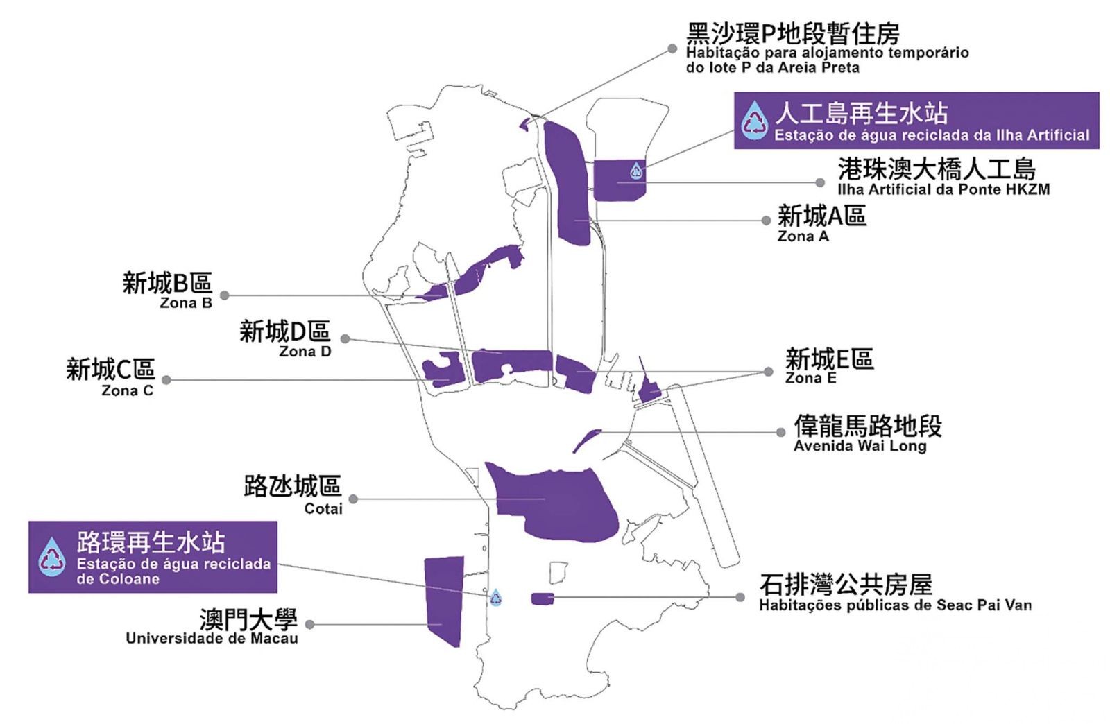 澳門應用再生水範圍為部分建有雙管道的區域。(運輸工務司司長辦公室圖片)