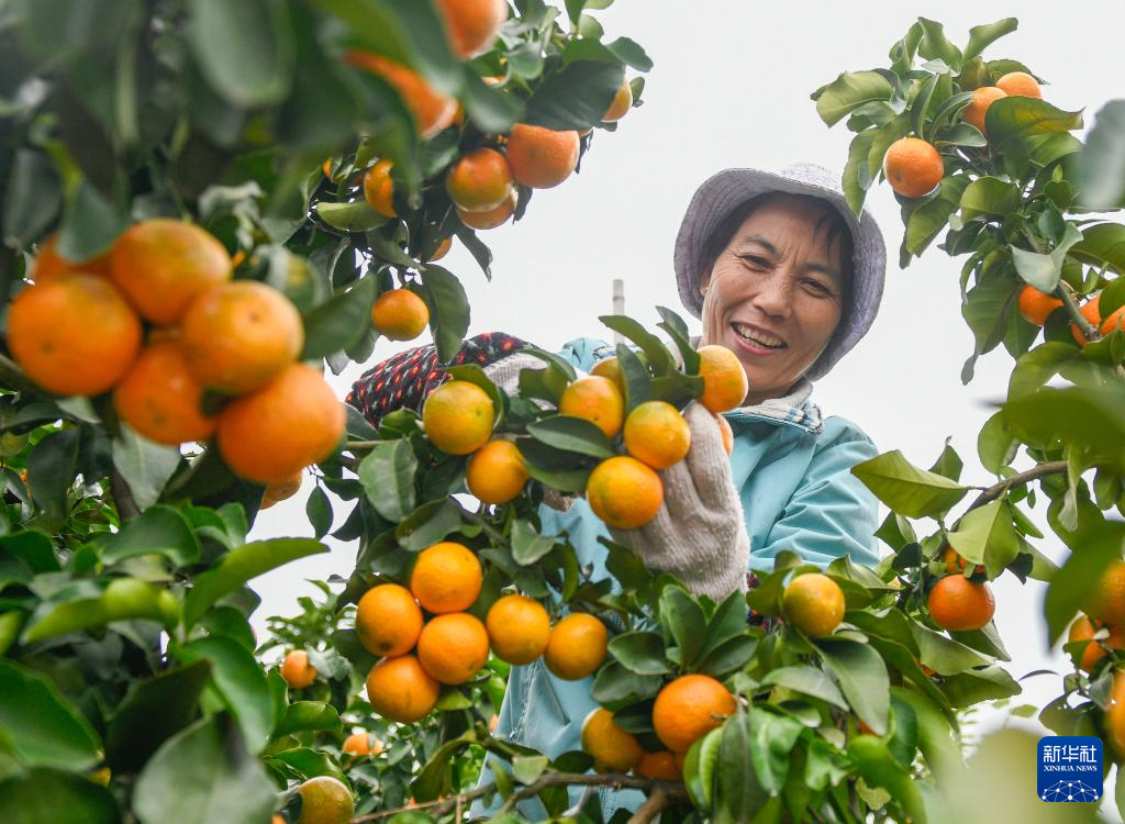 11月2日,湖南省永州市道县蚣坝镇兴桥村村民在采摘沙糖桔。