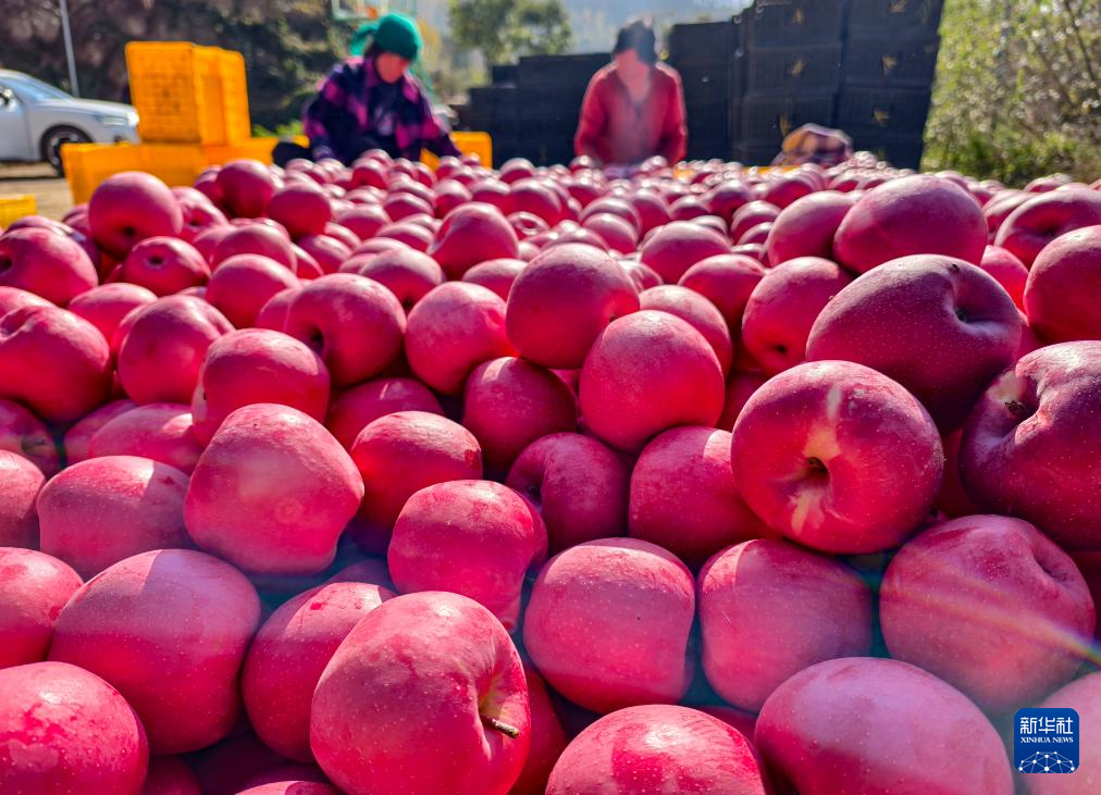 10月30日,甘肃省平凉市静宁县贾河乡农民在分拣苹果(手机照片)。