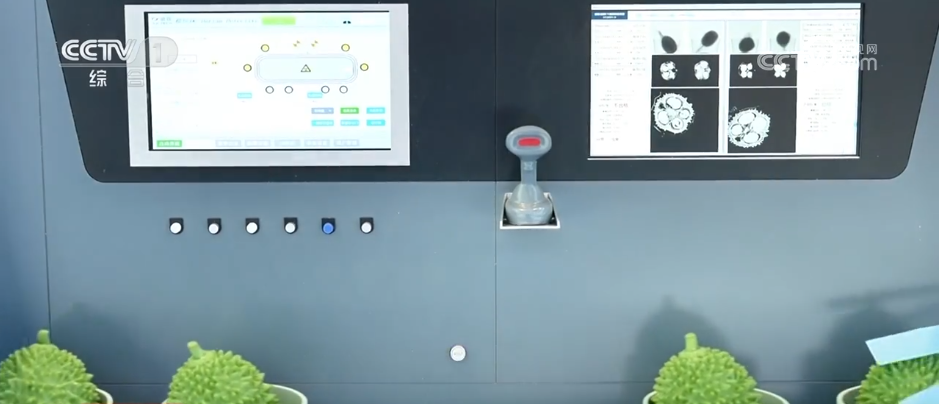 来看这里,果肉是不是饱满?有没有空房、虫害等这些指标都可以呈现出来。完成一颗榴莲的检测只需要12秒。准确率超98%。工作人员告诉记者,“榴侦探”正在研发二代产品,明年将出现在马来西亚的榴莲原产地。