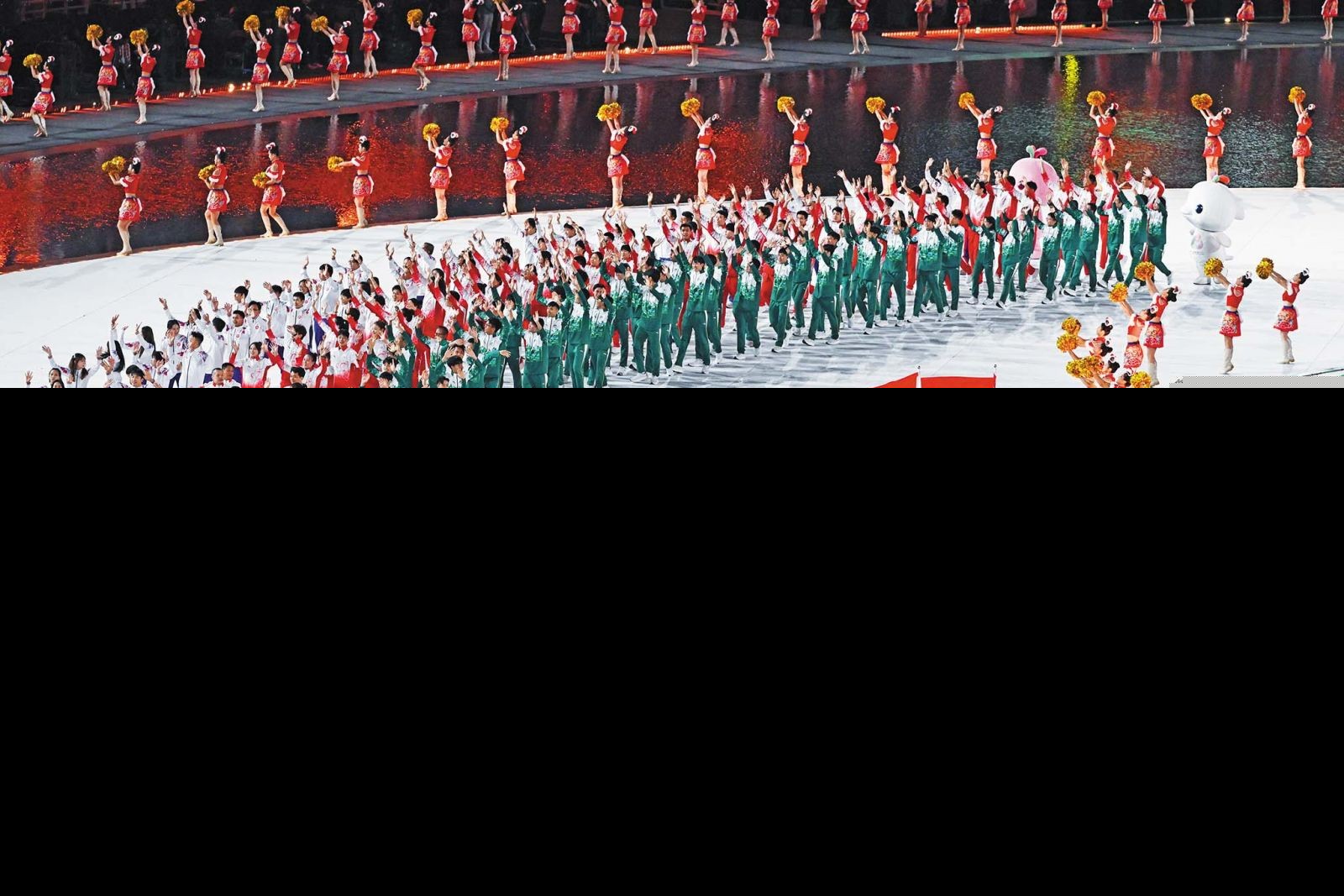第十五屆全運會開幕式11月9日在廣州舉行。粵港澳體育代表團在入場儀式上壓軸同步入場。 (新華社圖片)