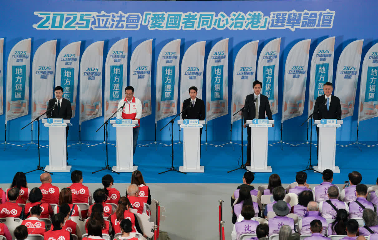 (大公文匯全媒體報道)香港第八屆立法會選舉將於12月7日舉行投票。特區政府於11月11日至11月30日舉辦共39場2025立法會「愛國者同心治港」選舉論壇,邀請各地方選區、功能界別和選舉委員會界別的候選人向其選區或界別的選民和市民介紹其政綱理念及對多項社會議題的看法。今日(12日)上午9時30分,「新界北地方選區論壇」在天瑞體育館舉行,區內5位候選人,1號譚鎮國、2號曾勁聰、3號沈豪傑、4號廖子聰及5號姚銘出席。