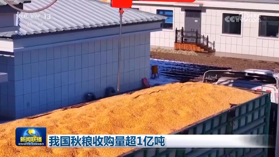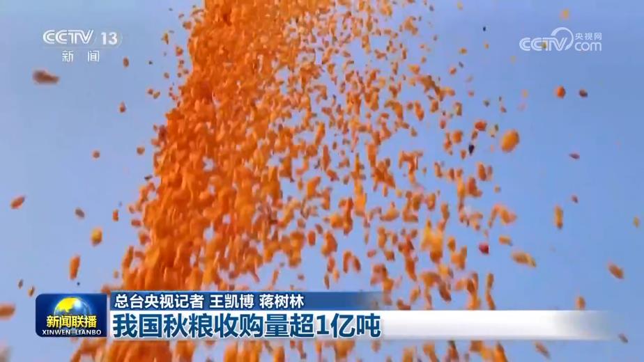 央视网消息(新闻联播):国家粮食和物资储备局最新发布,截至目前,全国各类粮食经营主体累计收购秋粮超1亿吨,收购进展总体顺利。