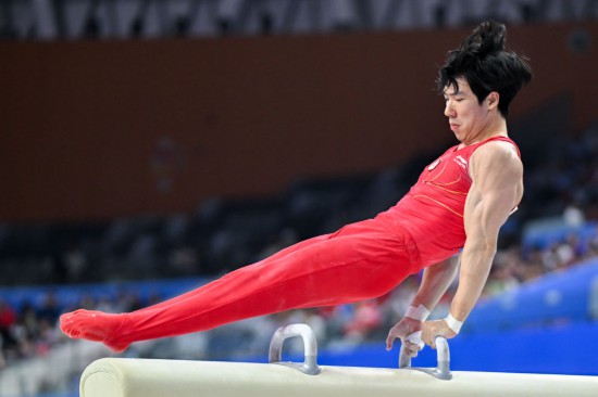 11月12日,湖南队选手张博恒在鞍马比赛中。新华社记者 杜子璇 摄