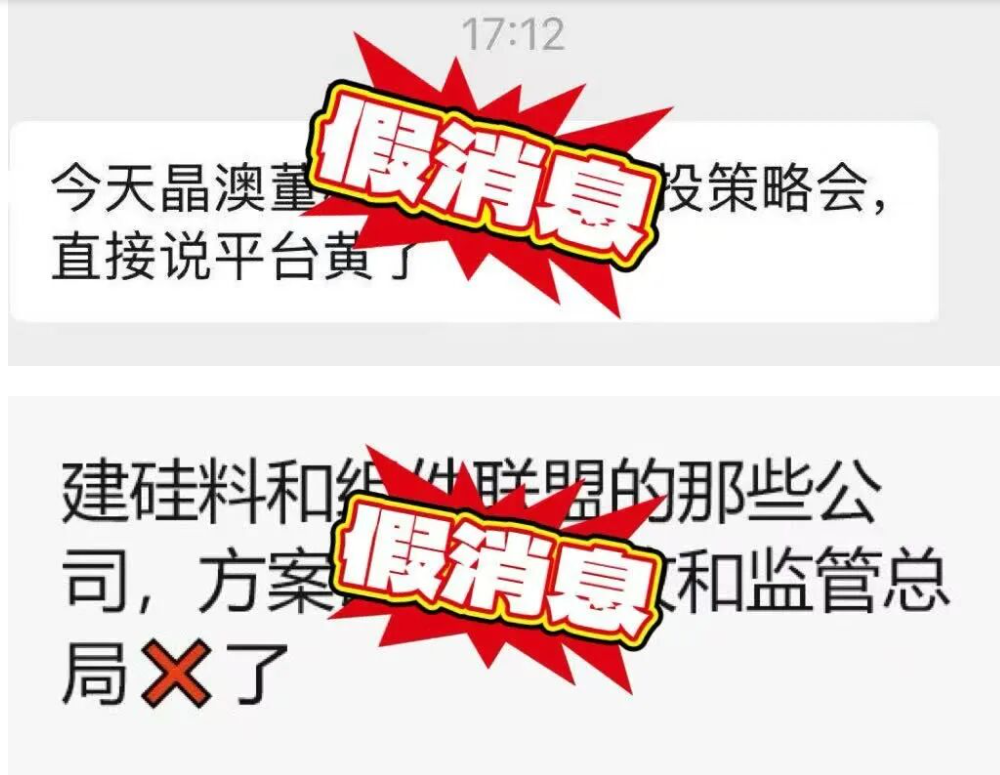 ·中国光伏行业协会:网络流传的小道消息均为不实信息。