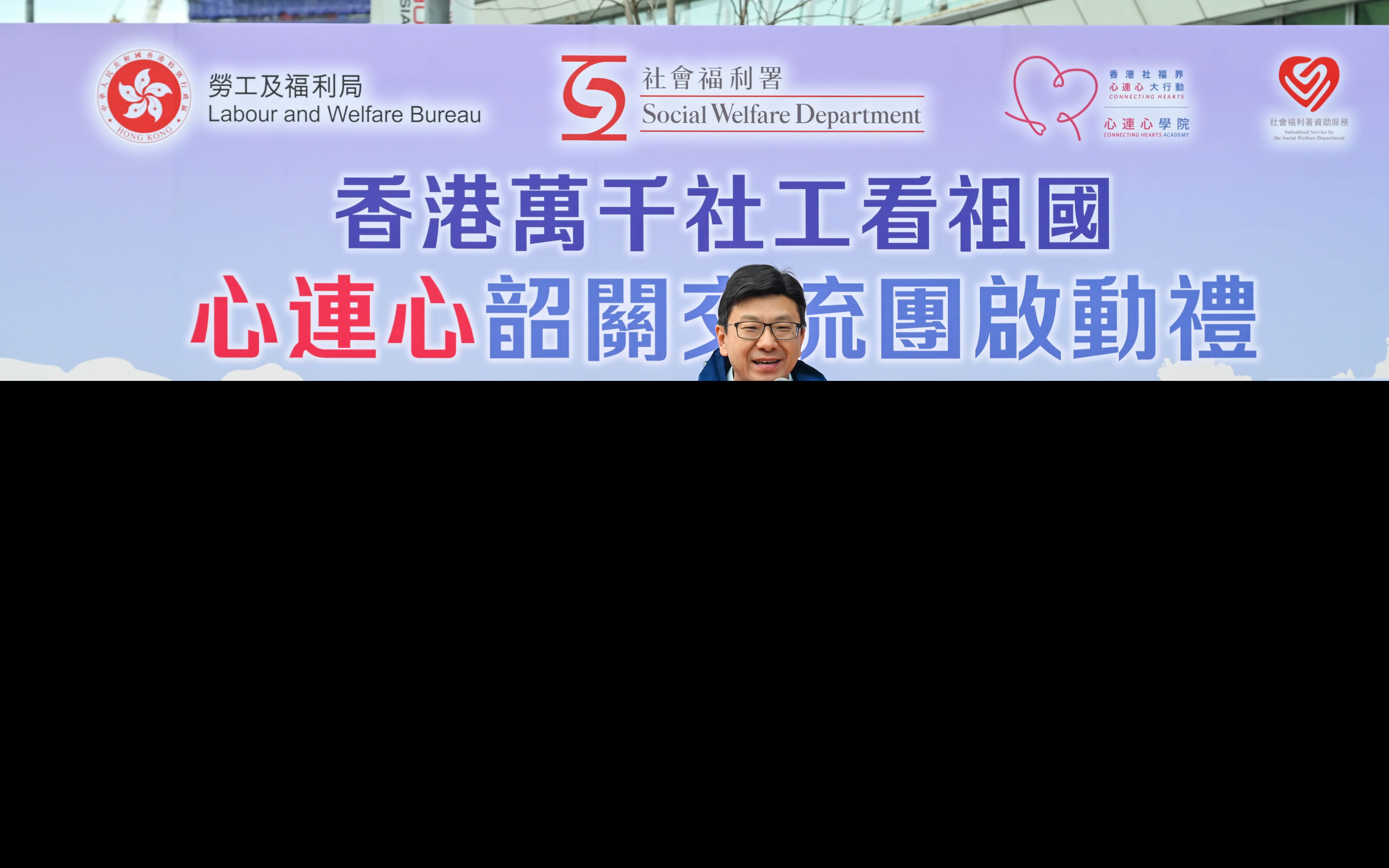 香港文匯報訊 香港萬千社工看祖國──「心連心」韶關交流團今日(13日)於西九高鐵站舉行啟動禮,300多位社工出訪韶關進行參觀及交流。勞工及福利局局長孫玉菡致辭時指,今日是第五團香港萬千社工看祖國交流團,亦是第二次出訪韶關,而首團的回饋非常好的,內地單位對大家的待遇、關懷,以及所見所聞,都會令大家喜出望外,希望第一次出訪韶關的社工們可以和內地的同工有深度交流。