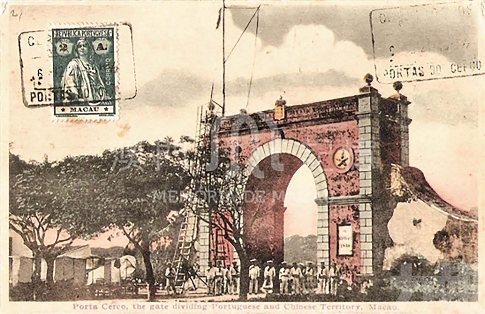 1867年,葡萄牙殖民政府將中式關閘拆除,1871年建成並啟用新的西式關閘(如圖)。(利冠棉藏,澳門歷史教育學會提供,摘自「澳門記憶」文史網)
