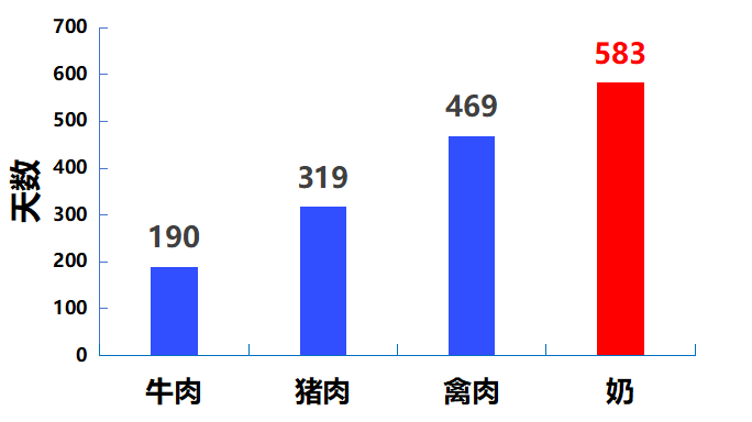二、全民奶支撑粮食安全。发展奶牛养殖业可以最大限度地提高土地利用效率,减轻饲料粮压力,为保障粮食安全作出贡献。研究发现,以满足成年男性每天需要的蛋白质计算,每公顷喂养动物所产蛋白质数量能满足的天数,牛奶583天、禽肉469天、猪肉319天、牛肉190天,牛奶转化效率最高,这是因为其他动物只能利用农作物的籽实,丢弃秸秆,而奶牛拥有独特的瘤胃微生物发酵系统和乳腺高效生物合成系统,能够充分利用全株玉米青贮等全株农作物的生物量实现牛奶高效合成。