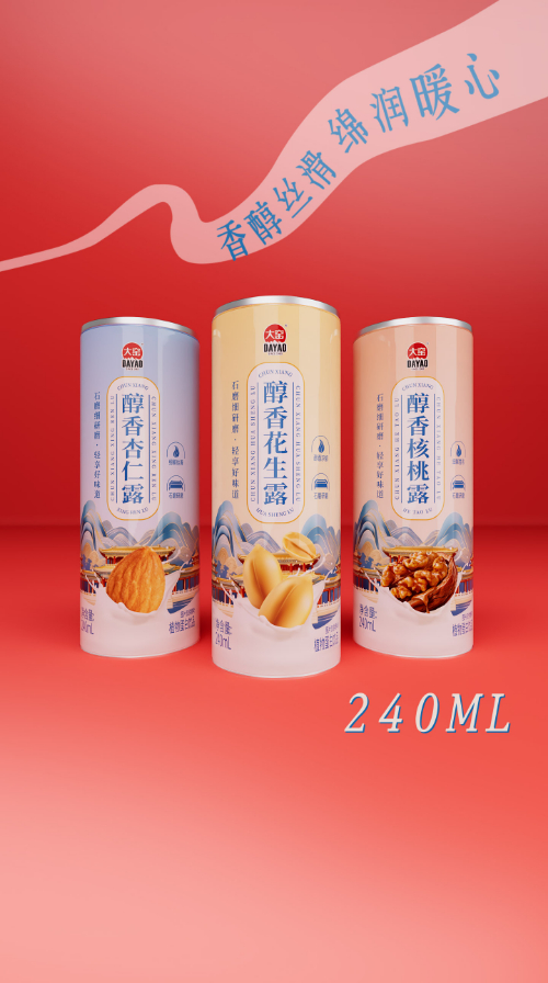 三款新品均为240毫升易拉罐包装,精选承德黄金产区核桃、优质野生山杏仁等原料,创新融合了现代工艺与古法精髓,在口感与营养层面均实现突破。
