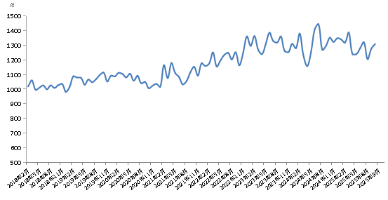 2025年10月份,新华·中盐食用盐(商超)价格指数报1310.10点,较上期(2025年9月)上涨32.34点,涨幅2.53%;较基期(2018年1月)上涨310.10点,涨幅31.01%;较周期内最高点1445.75点(2024年7月)下跌135.65点,跌幅9.38%;较周期内最低点981.91点(2018年12月)上涨328.19点,涨幅33.42%。