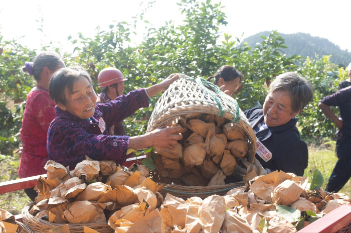 对潼南及周边产区村民来说,雪王农业的到来还意味着越来越多在家门口就业的机会。陆海燕介绍,套袋和采摘是每年的用工高峰,200余亩种植面积需要80到90人套袋,由于今年雨季较多,首批柠檬采摘用了130人左右,基本都是本地村民。“到了采摘期,很多外出务工的人也会回老家的果园干活,手脚快一些的话,两口子一天可以挣300块钱,比他们在外面挣的钱还要更多一些。”陆海燕倍感自豪地看到,果园变得越来越热闹,给乡亲们创造了就近增收的好机会,柠檬产业成了当地人的“幸福产业”。