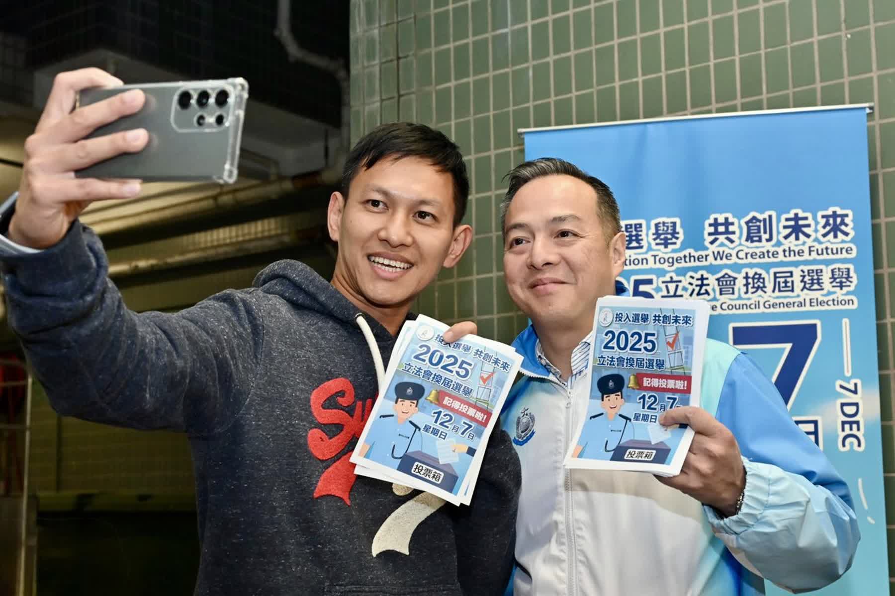 香港文匯報訊(記者 蕭景源)警務處處長周一鳴今日(20日)聯同香港警察隊員佐級協會主席梁俊傑,以及人事服務及職員關係科人員,齊到柴灣已婚警察宿舍派發宣傳單張,呼籲居民於12月7日「2025立法會換屆選舉」積極投票,一同為香港未來出力。
