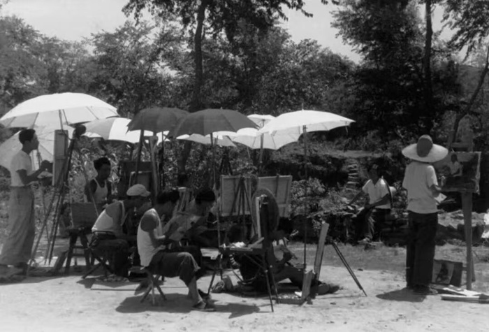 1955年油画训练班在京郊农村作外光作业 图片来源:中央美术学院美术馆
