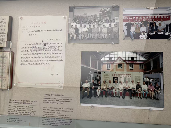 展览主体分为三个部分,结构清晰,层层递进。第一部分位于美术馆一层主厅。该部分通过精心营造的步入式景观空间,以历史图片、档案文献与文本资料为主体,构建了一段生动的历史回溯。展出的100余幅记录“马训班”期间教学、写生与日常生活的照片,连同马克西莫夫留存下来的授课笔记、已发表的各类座谈纪要以及学员们的回忆文字,共同勾勒出这个集体鲜活而真挚的学习轨迹与交往图景。