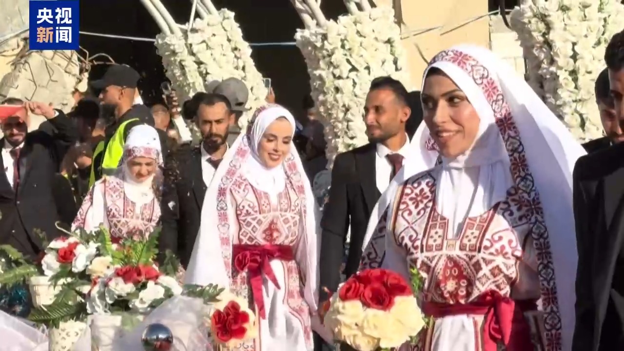 加沙停火第一阶段协议生效,持续的战火暂时告一段落。加沙民众在停火之后的近两个月时间里尝试开启新的生活。当地时间12月2日,在加沙南部城市汗尤尼斯的断壁残垣之间,五十多对巴勒斯坦新人举行了一场特殊的集体婚礼。