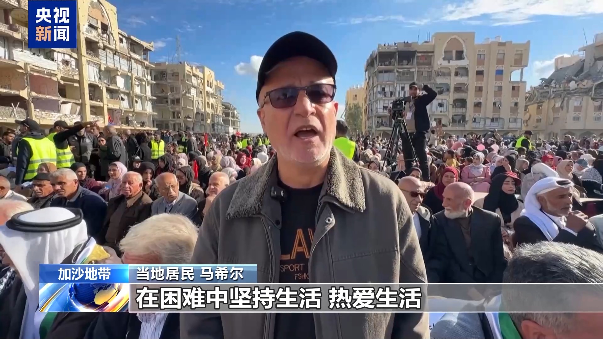 当地居民 马希尔:我们巴勒斯坦人拥抱生活,在困难中坚持生活,热爱生活。我们将通过这场集体婚礼,还有各种各样的形式继续斗争。