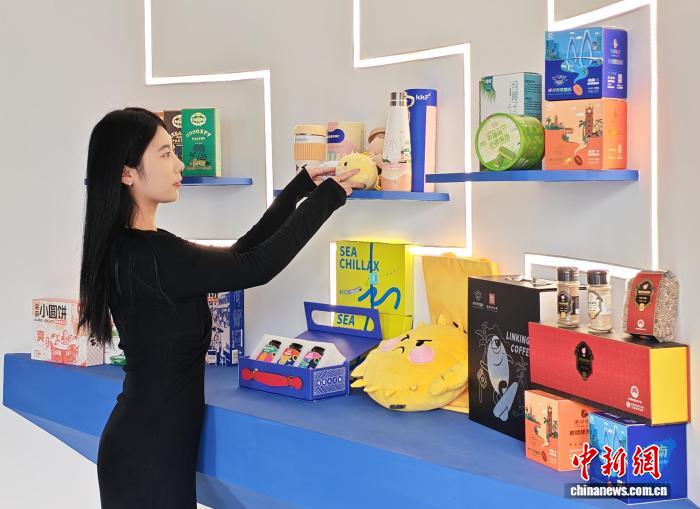 12月5日,海口市跨境电商协会秀英区运营中心工作人员正在直播选品区上架“海南特礼”。中新社记者 王子谦 摄