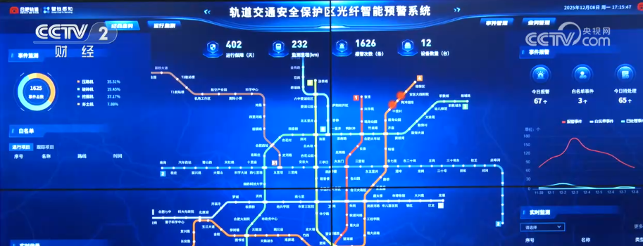 在轨道交通的控制中心,记者见到了这套智能系统。通过量子精密测量技术与地铁内的通信光纤结合,监测地铁保护区内施工活动。当系统发现异常振动时,无人机立即启动巡航,排查地面安全隐患。