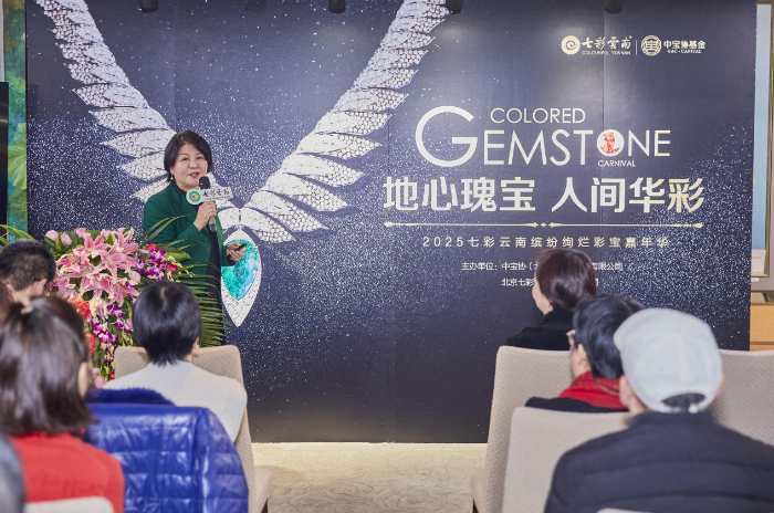 作为活动的主办方,北京七彩云南商贸有限公司总经理董莉莎在随后的致辞中,深情阐述了品牌的办展初心与战略思考。她回顾了北京七彩云南在2025年以玉文化为主线、贯穿全年的系列展览,指出本次彩宝节是品牌文化矩阵的重要收官与拓展。“从‘玉’的温润到‘宝’的绚烂,我们始终致力于搭建公众与自然瑰宝之间的认知与情感桥梁。”董莉莎强调,“举办此次彩宝节,源于我们三个核心的初衷:一是推广宝石背后蕴含的地质科学与人文美学,让璀璨归于知识;二是搭建一个开放、专业的行业交流平台,促进行业共融共生;三是践行‘普惠之美’,通过高水准的展览与教育,让更多消费者能够领略、读懂并拥有这份来自地心的华彩,让珠宝真正成为可触及的美好生活组成部分。”