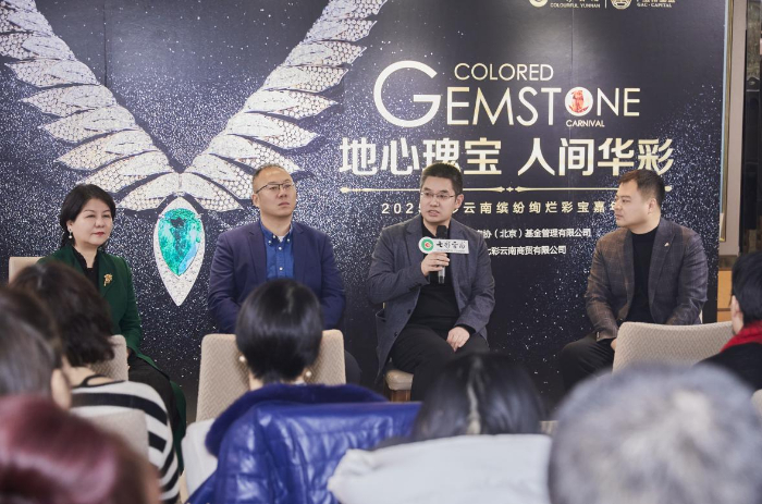 开幕式后的“大师论坛”以“新周期,新价值:中国彩色宝石市场的机遇与未来”为主题,特邀何雪梅、柳毅、张健及七彩云南珠宝板块副总经理贾晓峰四位嘉宾,从学术、投资、检测、市场四大维度展开深度对话。