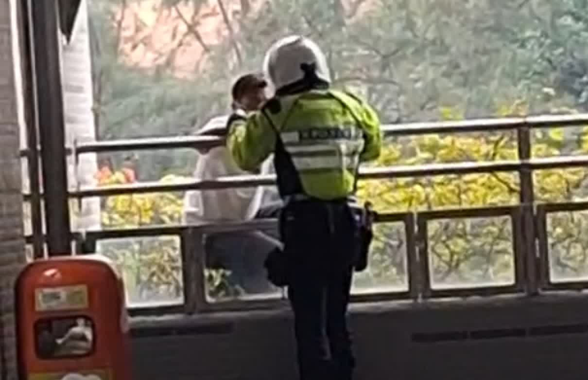 根據網上車CAM片段,案發時一輛本田私家車在窩打老道南行線衝出太子道西,並逆線駛入另一邊窩打老道南行逃去,一輛警方電單車尾隨響號追捕。另有片段顯示,一名男子爬出行人天橋欄杆外,一名戴頭盔警員大聲勸止「落嚟先講、落嚟先講...落嚟畀個機會你...」。