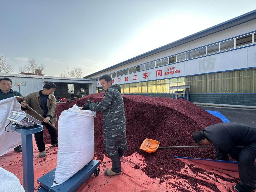 村里的晾晒场上,红果铺成一片,阳光下泛着油润光泽;隔壁屋里,村民正在分拣、打包。刘佩林告诉记者,弟弟刘德果从小腿脚不便,20年前她用出来打工的第一笔工资买了200多棵山茱萸树苗种在家里后院。“想着给他留个保障。树在,心就稳。”
