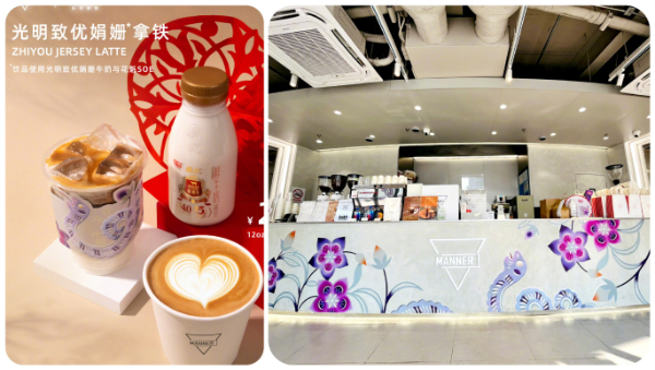 瞄准年轻化消费潮流,光明乳业通过跨界合作打造潮流消费场景记忆点。2025年开工季,光明乳业与聚焦都市白领圈层的MANNER咖啡达成深度战略合作,在全国20个城市1200多家门店限时上新“光明致优娟姗拿铁”联名产品,并打造主题门店。借势“开工第一杯咖啡”的热度,这款联名饮品快速出圈,跻身开年现象级爆款行列。通过将优质娟姗奶源与现制咖啡这一高频年轻消费场景深度绑定,光明乳业成功切入年轻上班族的日常消费链路,让品牌在潮流场景中自然触达目标群体,实现了产品与场景的精准匹配与高效转化,更让百年乳企的品牌形象焕发全新活力。