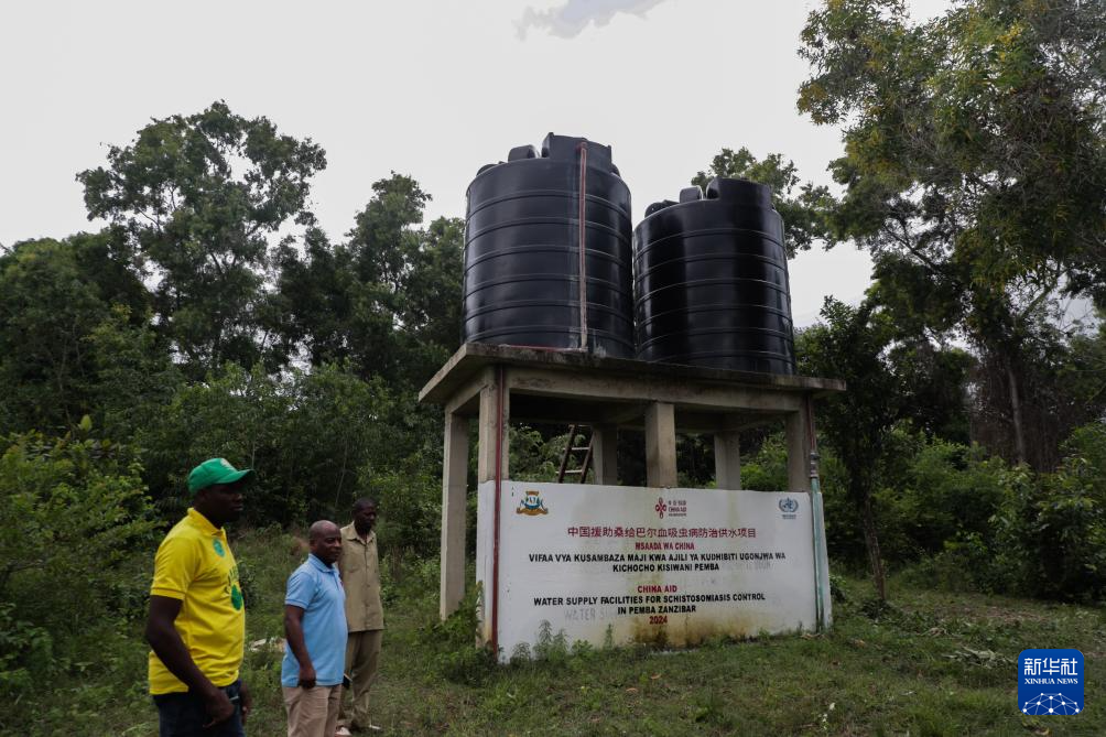 这是1月1日在坦桑尼亚桑给巴尔的奔巴岛拍摄的一处由中国援助坦桑尼亚“桑给巴尔血吸虫病防治技术项目”专家组援助建设的供水设施。它能够为当地社区提供安全用水。新华社发(赫尔曼·埃马纽埃尔摄)