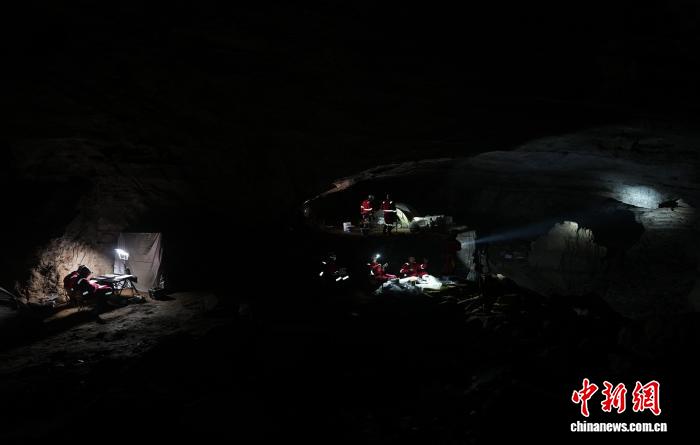2025年12月,中国航天员在洞穴中开展训练,图为洞穴主营地。(中国航天员科研训练中心供图)