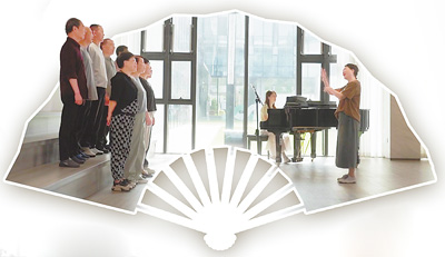 合唱爱好者在兰溪市文化馆的音乐自习室内排练。