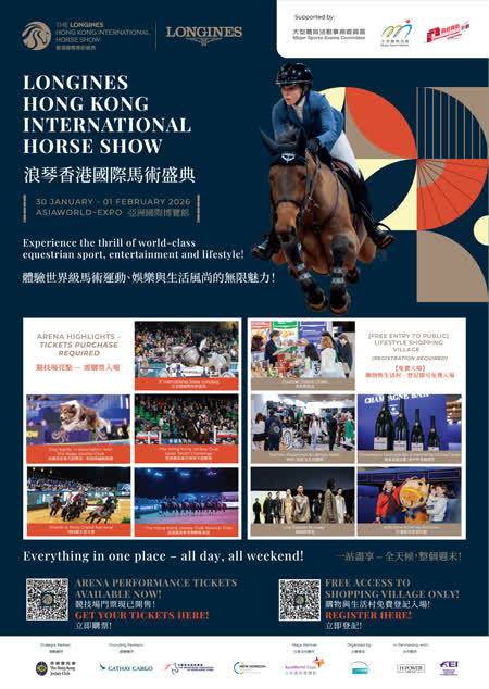 委員會主席吳守基今日(1月12日)表示:「2026年伊始,更多『M』品牌賽事將陸續舉行。其中,香港馬拉松作為香港最受歡迎的跑步活動之一,吸引來自世界各地的專業和業餘跑者,讓他們在香港獨特的城市景觀中展現競技精神;而於亞洲國際博覽館舉行的浪琴香港國際馬術盛典,將華麗地展現馬術的優雅與力量。這兩項賽事讓市民和旅客感受運動的魅力,彰顯香港多元文化和蓬勃的活力,鞏固香港作為國際體育盛事之都的地位。」